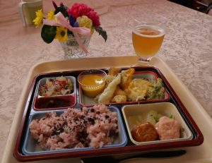 各テーブルに『はなや華』様のフラワーアレンジメントを飾り、ご利用者の祝い菓子に今年は『都屋商店』様のプリンをお渡ししました。地域の皆様、ご協力いただきありがとうございます。ご利用者ご家族の皆様、敬老の日おめでとうございます。