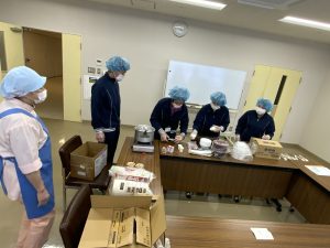 災害が起きて厨房職員が出勤できないことを想定し、他の職員でも対応できるように非常食の保管場所を確認しました。